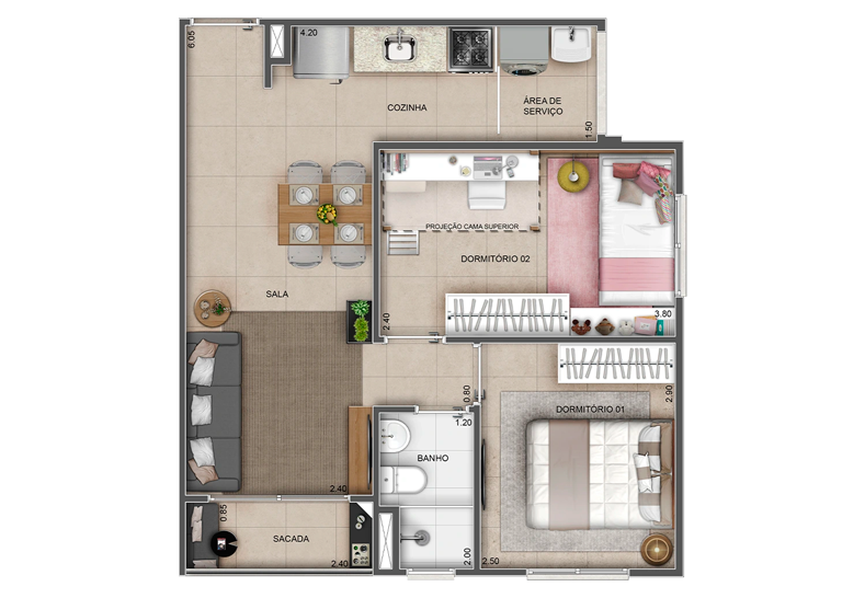 - Dormitórios: 2